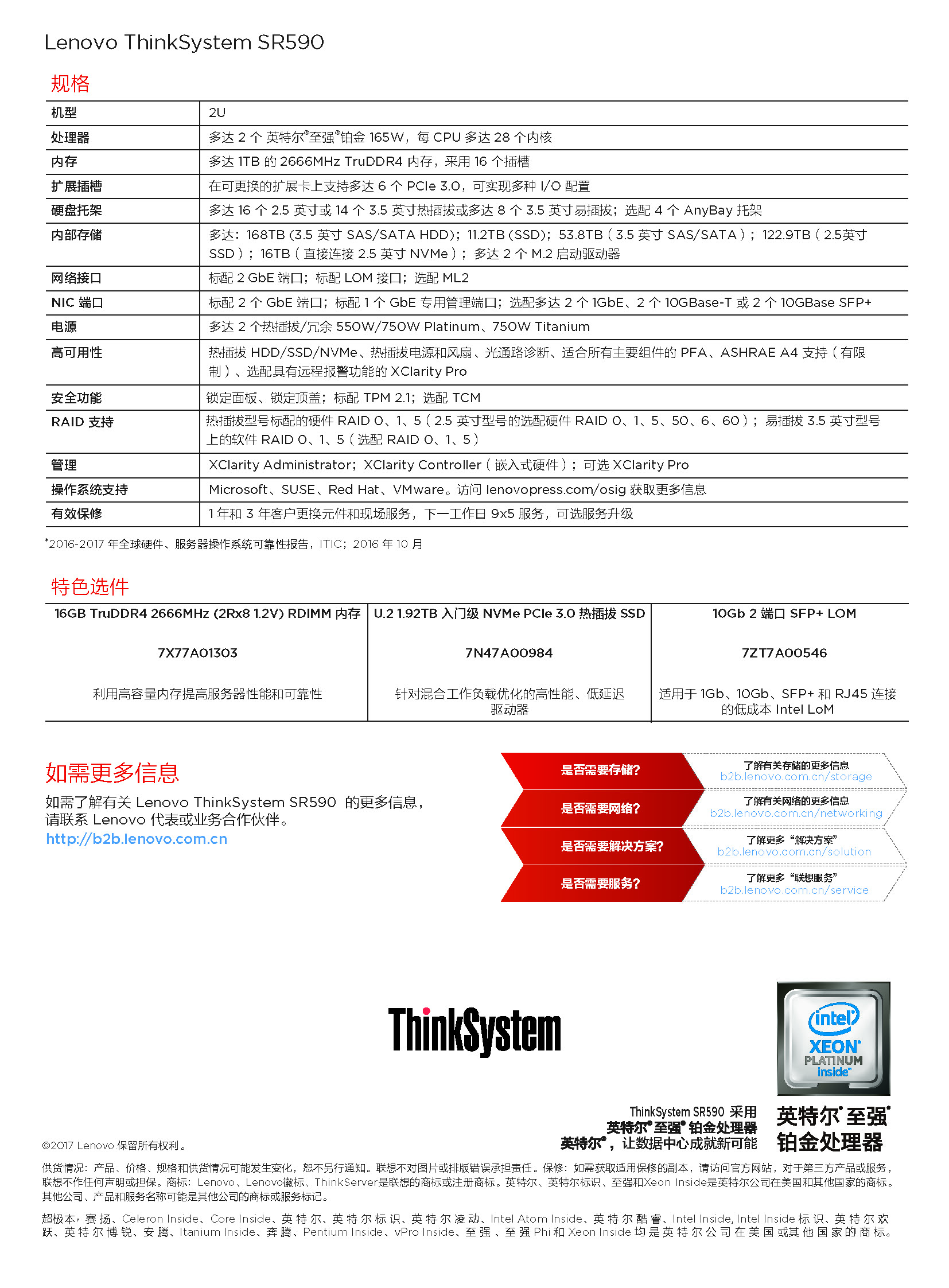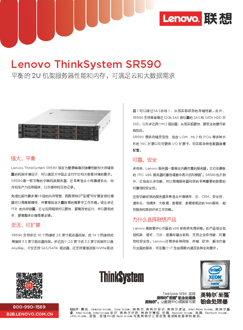 聯(lián)想Lenovo SR590服務器 2*4114 10核/2*16G/3*2.4T 10K SAS硬盤